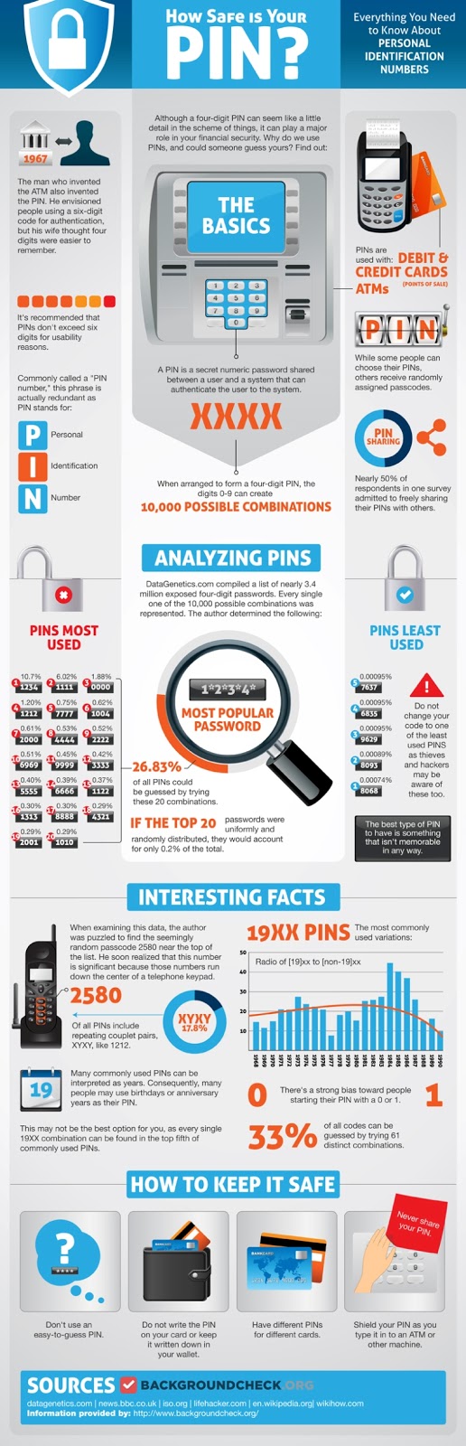 PIN (Personal Identification Number) is the only way to access the ATM and it is very necessary to know how safe is your PIN. In the following infographic some PIN facts are simplified.